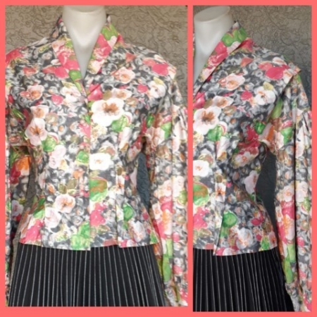 Vintage Long Scarf, Polyester, grey floral print, 151cm x 48cm
