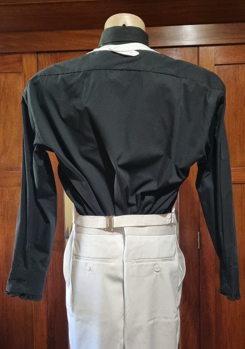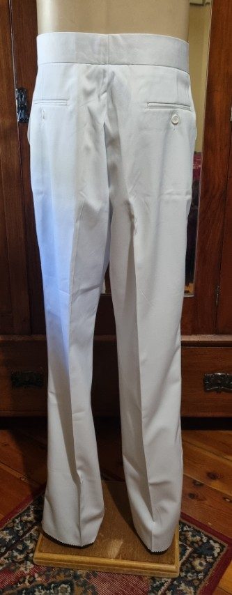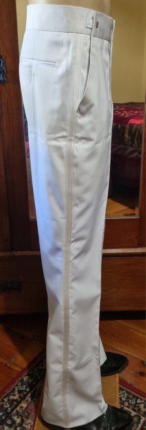 The pants have an adjustable waistline, going from 34″ to 38″ and the length is 46.5″, it has a raw bottom on the hem. The advantage of this is you can hem it to your required length under the 46.5″.