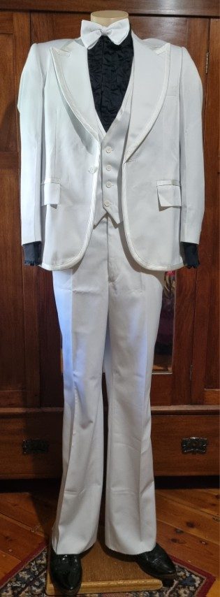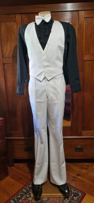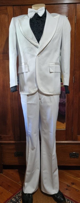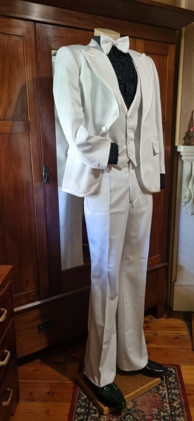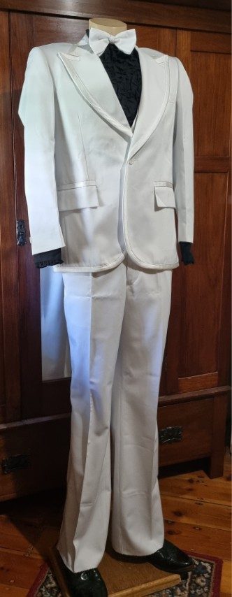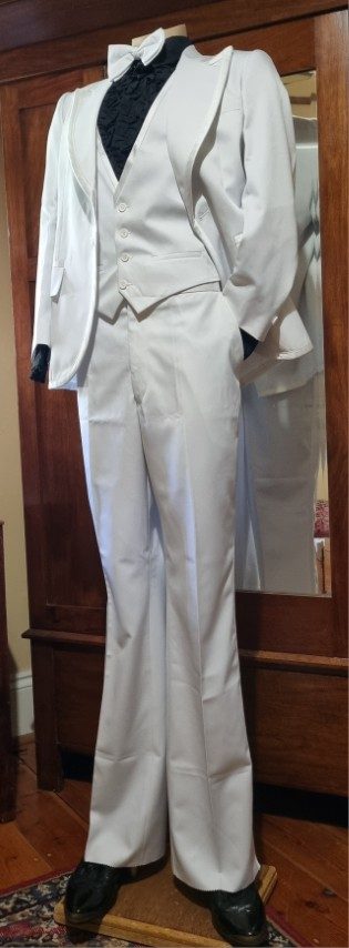 1970’s-Inspired, 3 piece, Disco Suit and bow tie, White, Polyester, by ‘Fun Costumes’, size L.