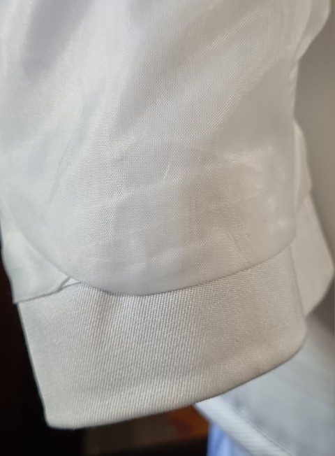 In a flat lay the fully lined jacket is 42″ in the chest, 40″ in the waist, 42″ in the hips, the length is 30″ and the shoulder span is 17″.There is room in the sleeves hem to let them down if required.