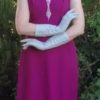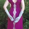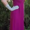 Our model has accessorized with 3/4 length silver lurex gloves, silver beads and silver sling back heels by Franco Burrone, these items are not included.