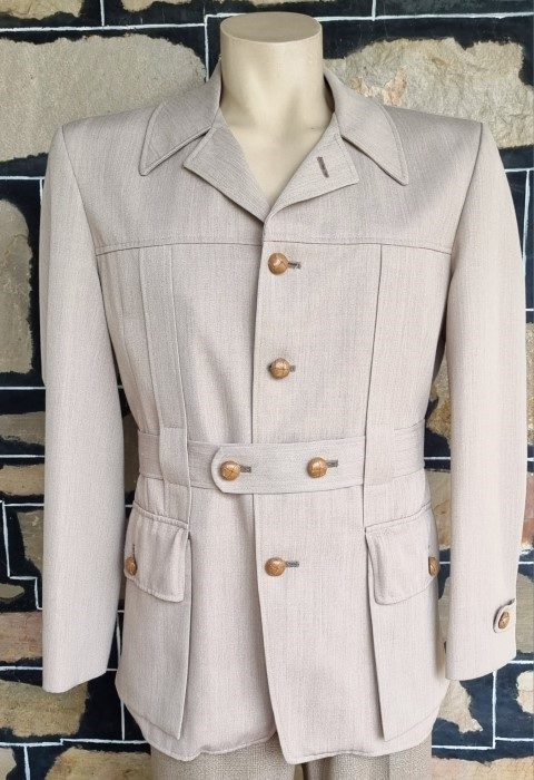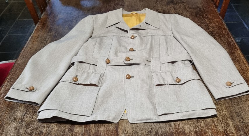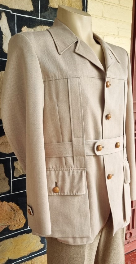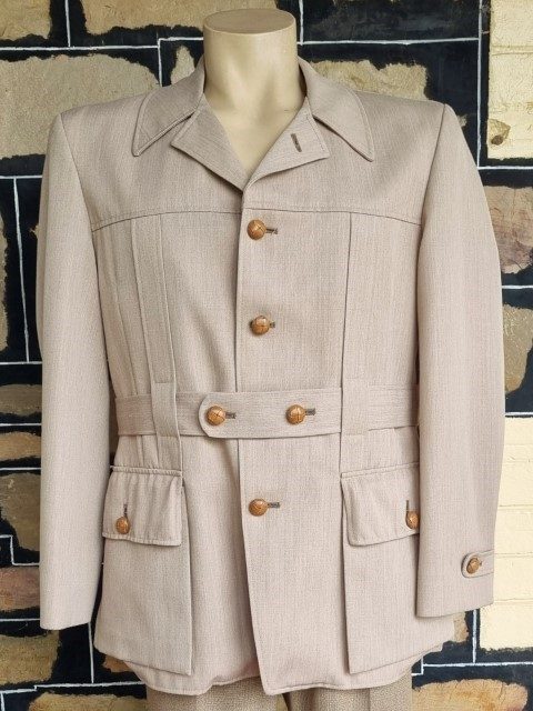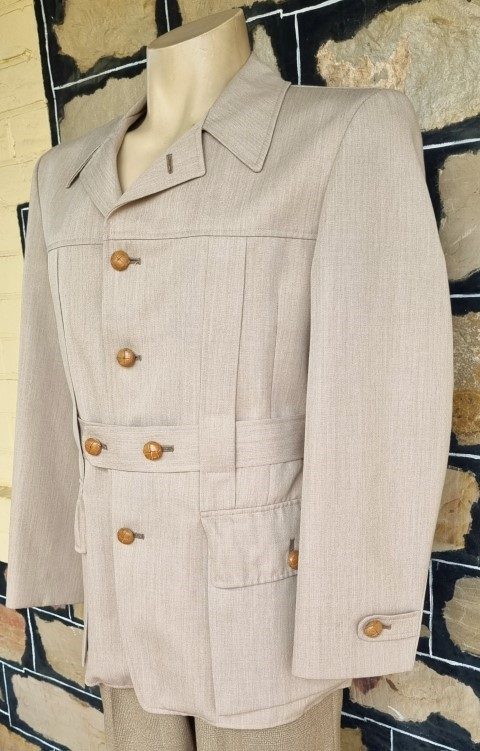 1970’s Safari Jacket, Long sleeves, by ‘Bladen’ wool/polyester, Fawn, size L