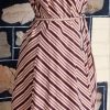1970s Shirtmaker Dress, by ‘Sportscraft’, caramel/red/black, pinstriped, cotton, size 14