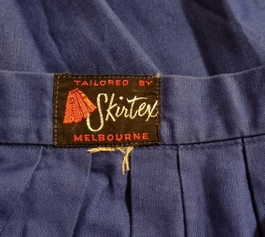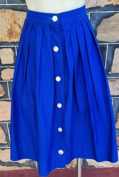 1970’s Skirt, button through, cotton, electric blue, by ‘Skirtex of Melbourne’ size 8