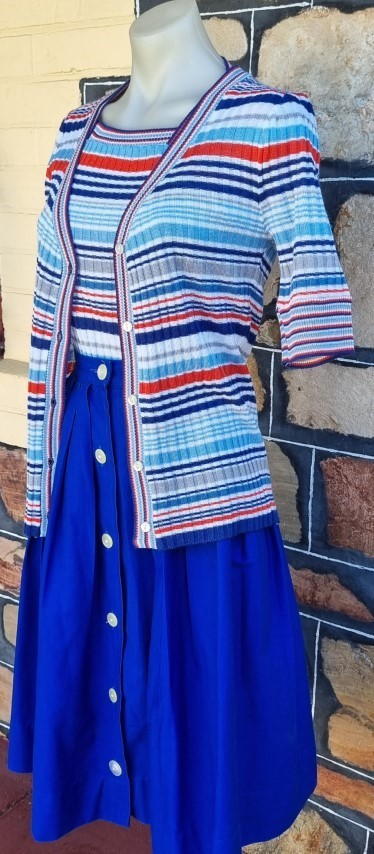 In the gallery I have shown how pretty she can look with our 70’s striped twin set.