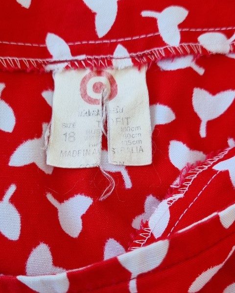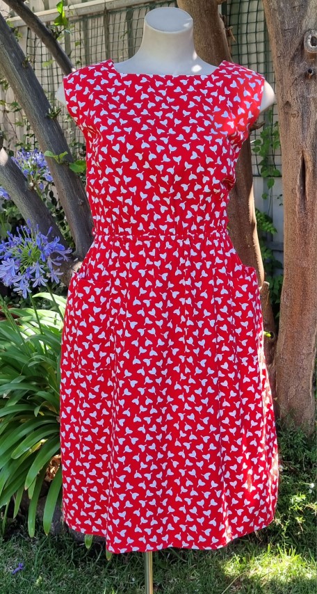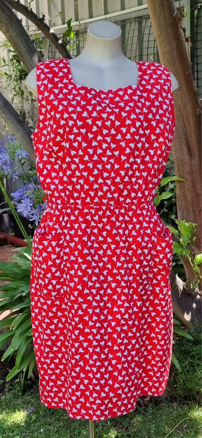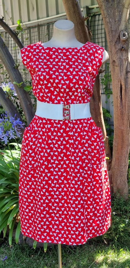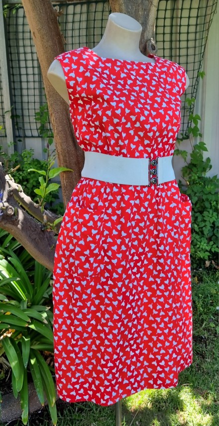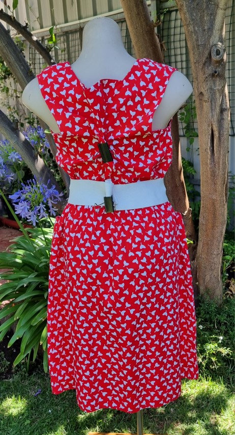 1970’s, Sleeveless Dress, Red/white, cotton, by ‘Target’, size 16, old label reads 18.