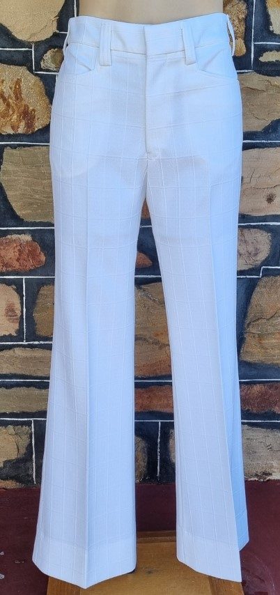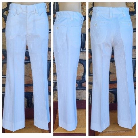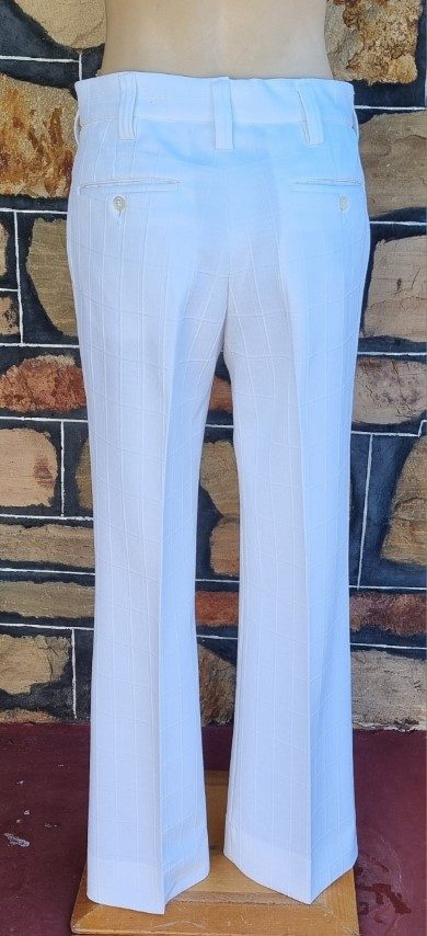 Nowadays, it is so rare to find brilliant Flares in such an outstanding condition, especially white ones! They are actually a men’s designer, but I photographed them on my female dummy, and they look so good. Freshly laundered and in excellent condition.