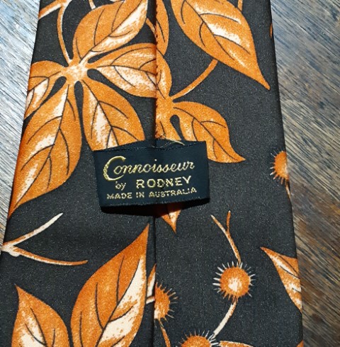 1970’s Wide tie, Brown/ orange, polyester by ‘Rodney’ for Connoisseur of Australia.