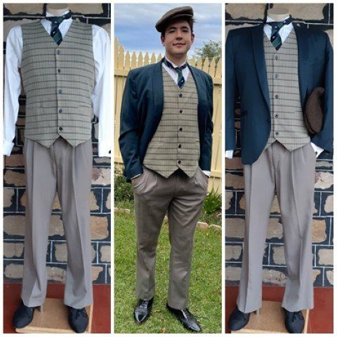 To create a 1920’s. 30’s or 40’s look, chose items to team with them like the gallery photos. Jacket, tie, waistcoat, cap and dinner shirt, none of these are included.