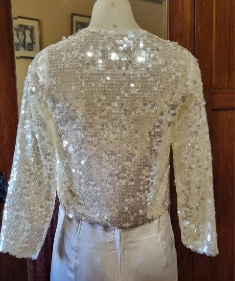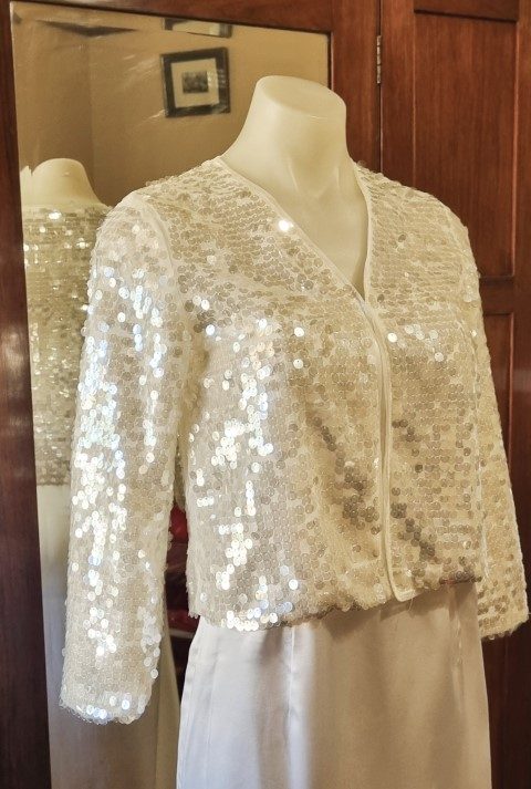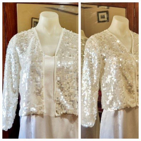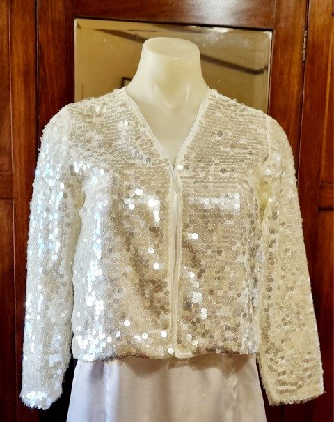 1980’s Inspired Bolero jacket, white, sequined, nylon, by ‘H & M’, size small