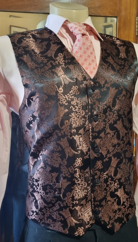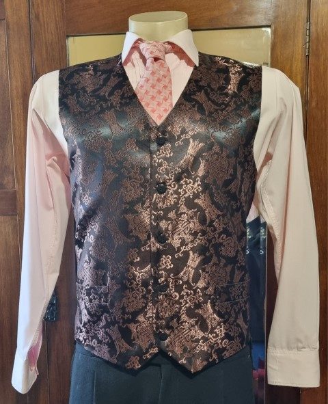 1980’s, Jacquard Waistcoat, Rose Gold/brown tones, polyester, by ‘Rogue’, size L