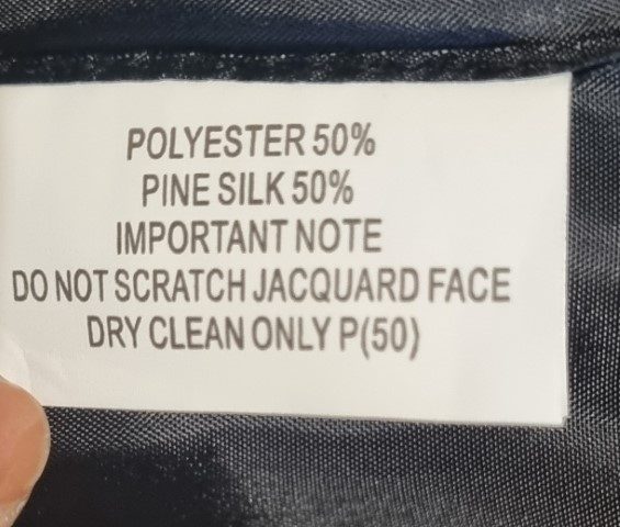 It has been freshly laundered, although the label does say to dry clean, but gentle hand washing is fine, no ironing.