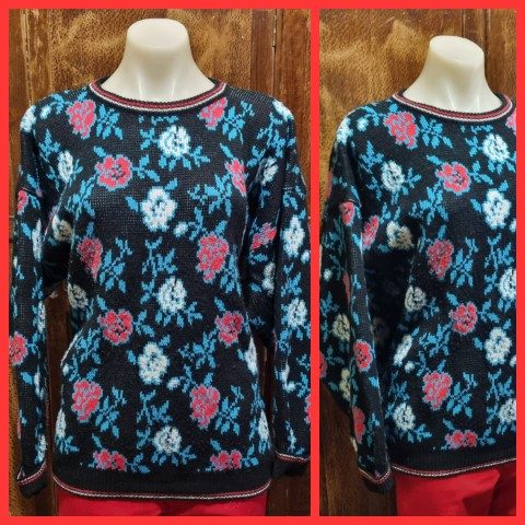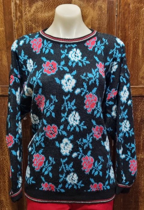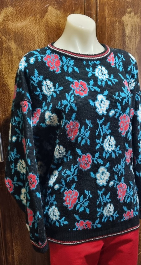 1980’s Jumper, Acrylic, Black Floral Pop Art Print, size L-XL