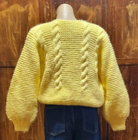 I wish you could feel through the internet, because you would just want to snuggle into this masterfully hand knitted jumper. And, she looks great down or tucked up, especially with jeans, as shown in the gallery photos.