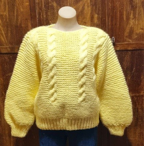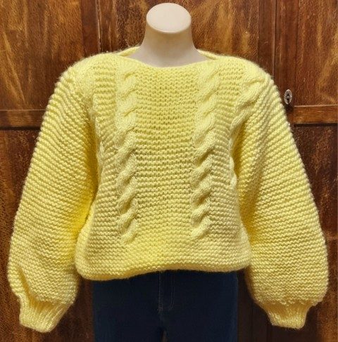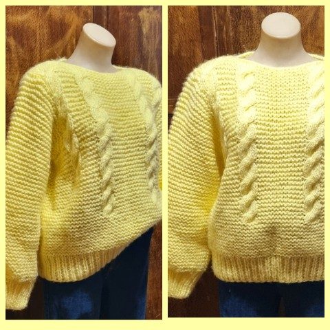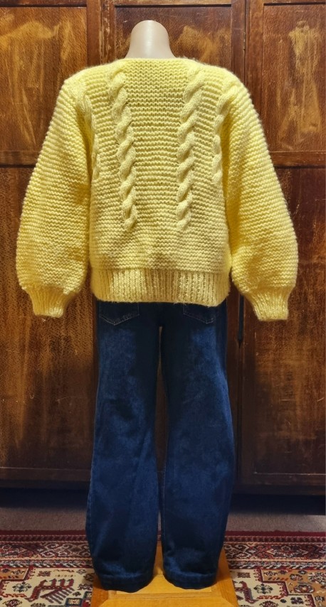1980’s Jumper, Lemon, Acrylic/Mohair, hand knitted, size L