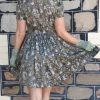 Original 1950’s Nylon Day Dress, green water colour print, hand made, side metal zip.