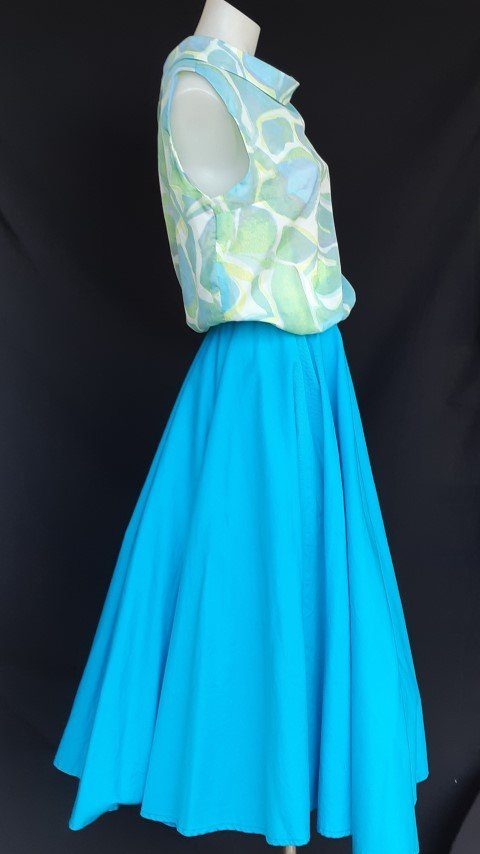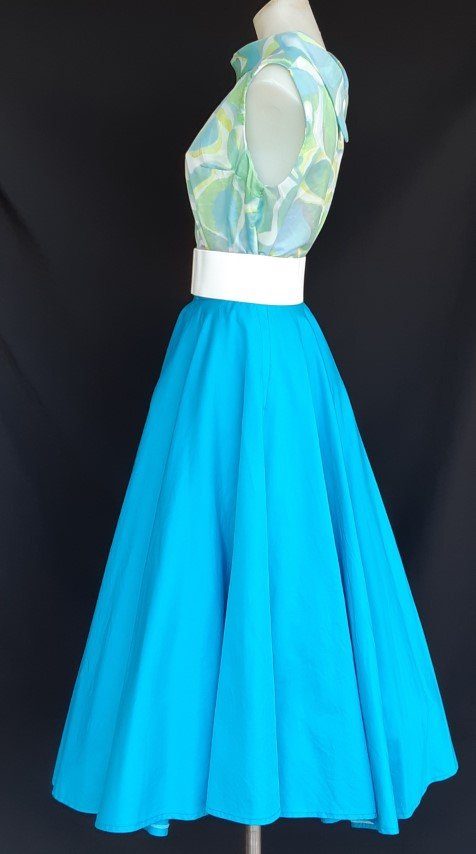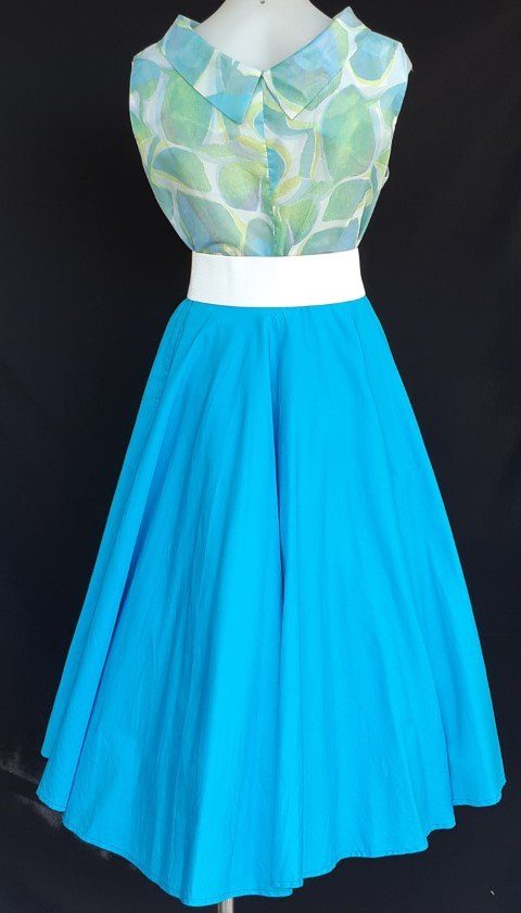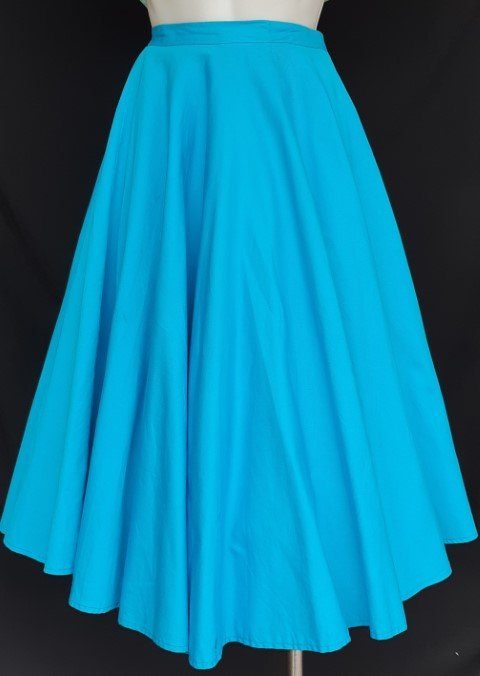 50’s inspired, Swing Cotton skirt, aqua, size 10. We have popped a 26″ petticoat underneath to give a fuller appearance, this is not included.