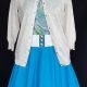 We have shown her with our 50’s nylon blouse, and Hell Bunny belt and Letterman Cardigan, are not included.
