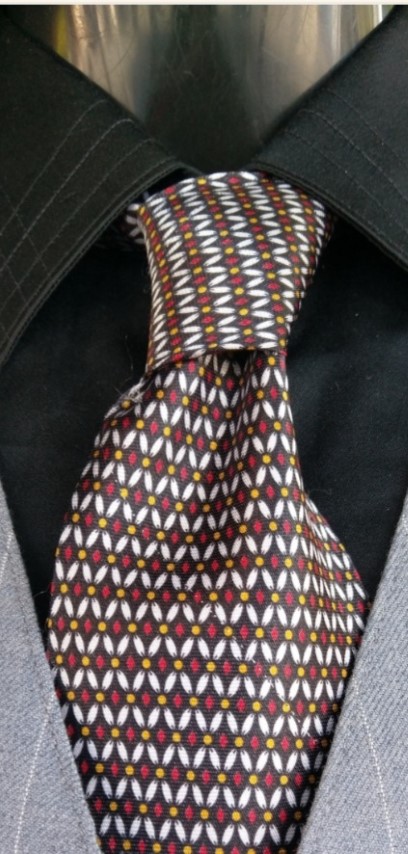 1980’s, Tie, polyester, by ‘Jatala’, Black/red/yellow/ white print.