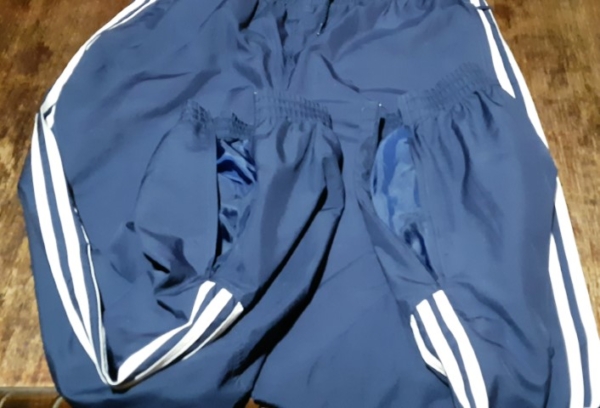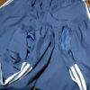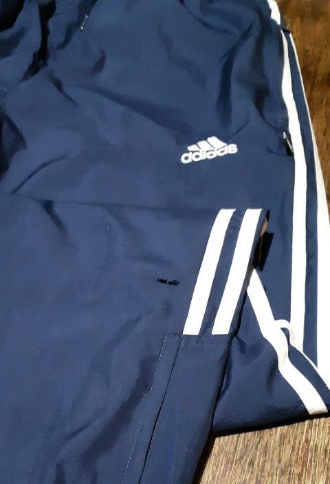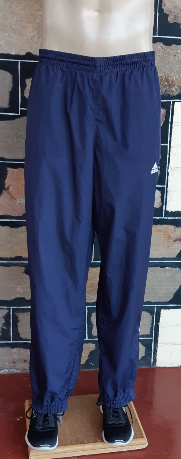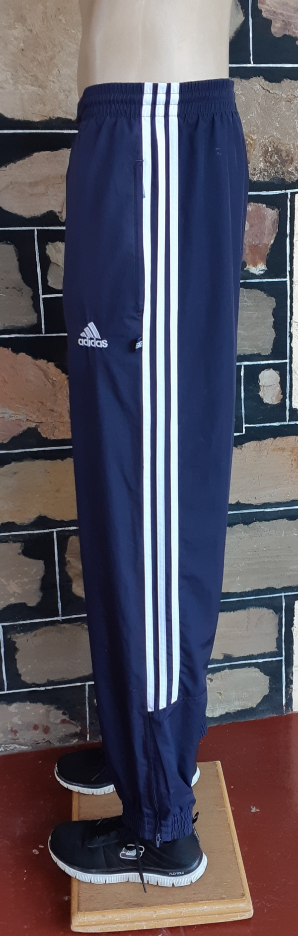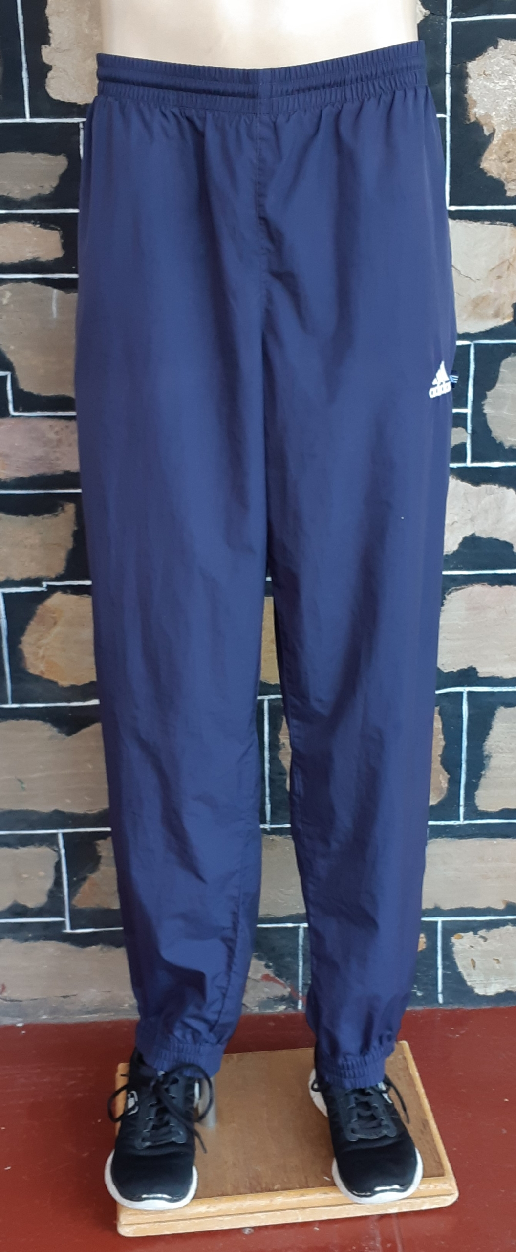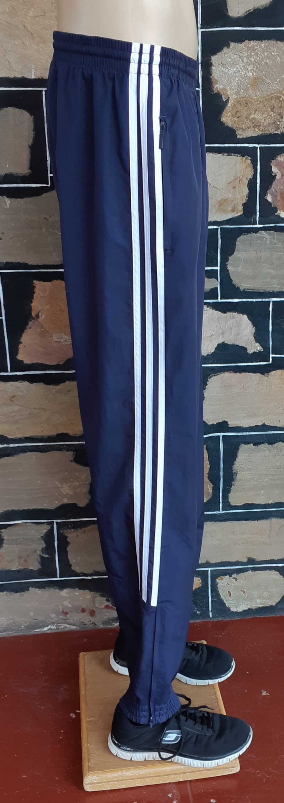 ‘Adidas’ Elastic Cuff 3 stripe pants, navy, polyester, size M