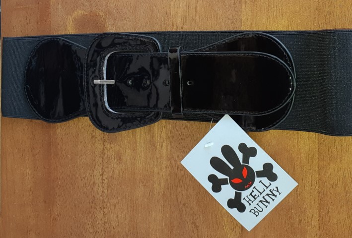 Black stretchy belt with PVC buckle, by ‘Hell Bunny’