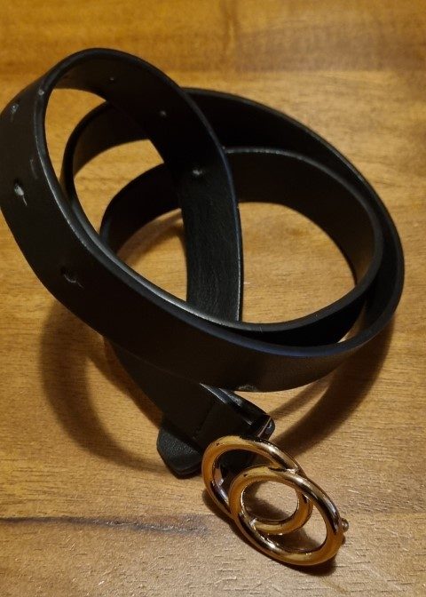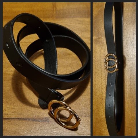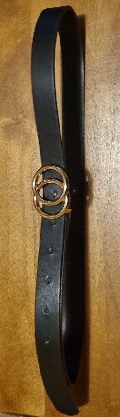 Black Vinal Thin Belt, with Brass buckle, size S-M