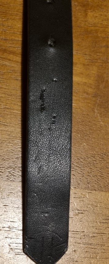 This lovely belt is 2.5cm wide. It has a couple of scratches, so it has been reduced.