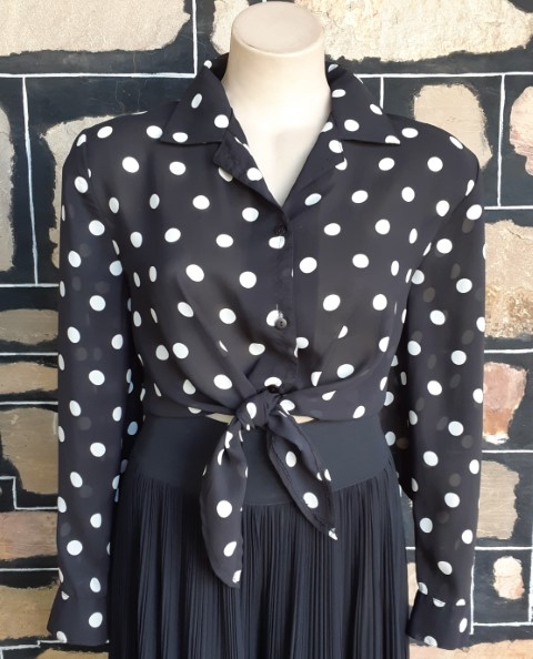 Blouse, black & white polka-dot, polyester by ‘Reserve’ 1980’s.
