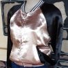 Bomber Jacket, Rock-a-billy, pink/black, satin polyester, reversible, by ‘Paper Closet, size 8- 10
