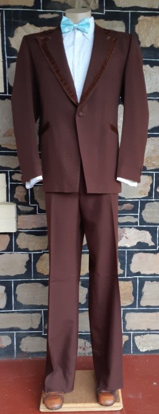 Looks great with a white dinner shirt and Brown suit for a dressy 70’s vibe, as shown in the gallery photo.