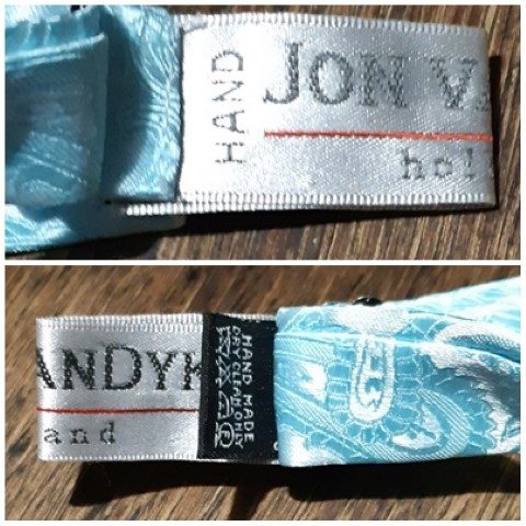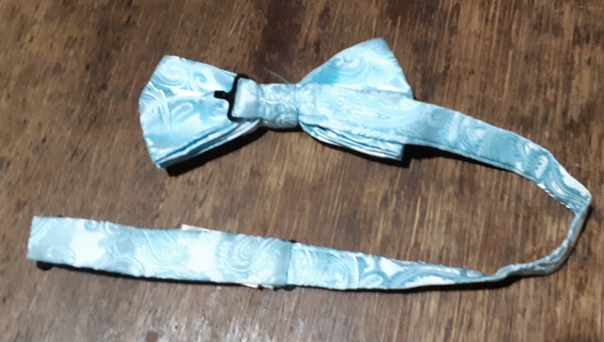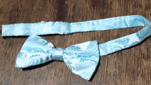 Bow Tie, pale blue, satin polyester, by ‘Jon Vandyk’, Holland, imported from USA.