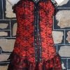 Can Can Dancer Costume, Mini lacy dress & Accessories, Red, Polyester