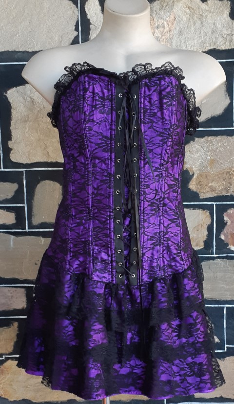 Can Can Dancer Costume, Mini lacy dress, Purple, Polyester