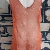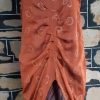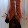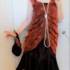 The under dress is chocolate brown polyester, it is larger than the overlay, but once its on you cant notice, it should be worn quite loose to achieve the authentic 20’s vibe. It measures 98cm in the bust, 106cm waist, 116cm hips and length is 117cm, we hitched up the shoulders with safety pins so it would look right on the models.
