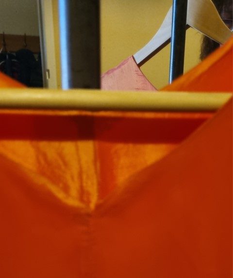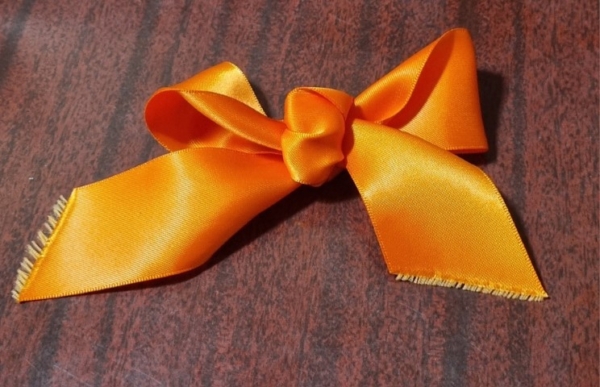 The bow can be detached, but underneath it is an other tiny mend, so it would be good to place a broach or flower there if you didn’t want to use the satin bow.