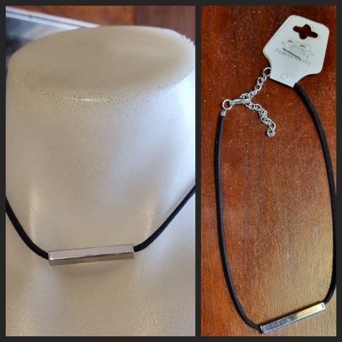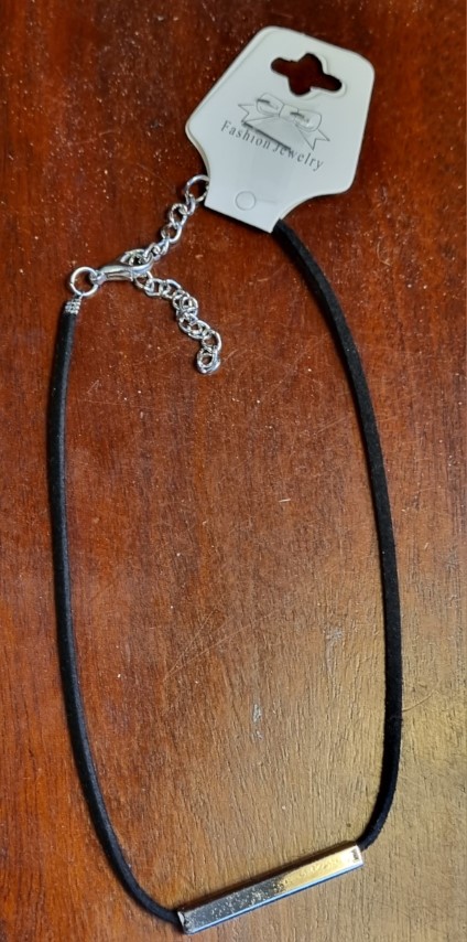 Choker, Suede necklace, and Chrome Pendant & chain clasp, new, by ‘Fashion Jewelry’
