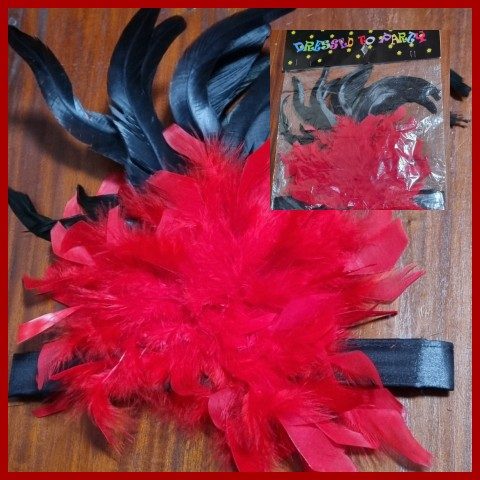 Deluxe Feather Headband, Red/black, by ‘Carnival Products’, ‘NEW’