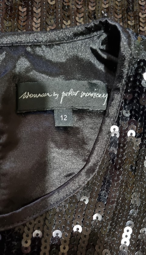 Disco Dress, black sequined, by ‘Peter Morrissey’, size 12.