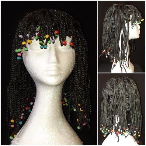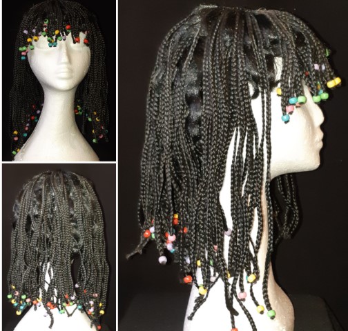 Dreadlocks with beads, Black, synthetic, ex-hire