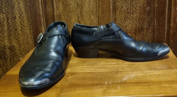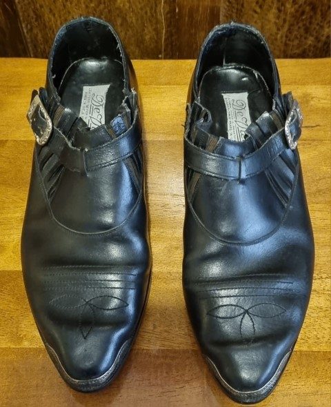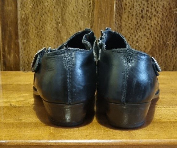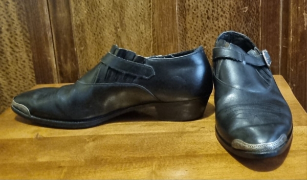 Dress Boot with side buckles, Cuban heel, Black, Leather, by ‘De Ville’, size 9