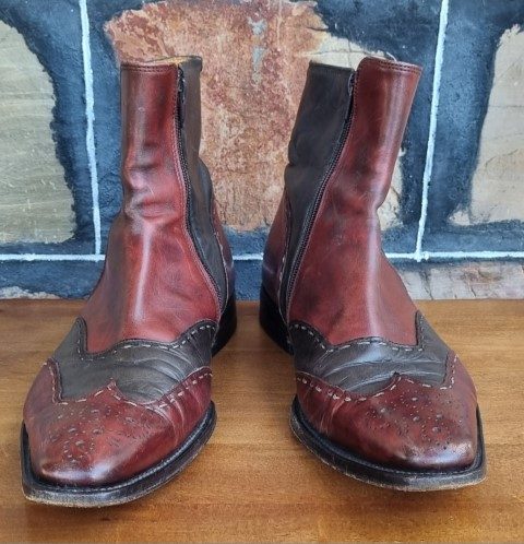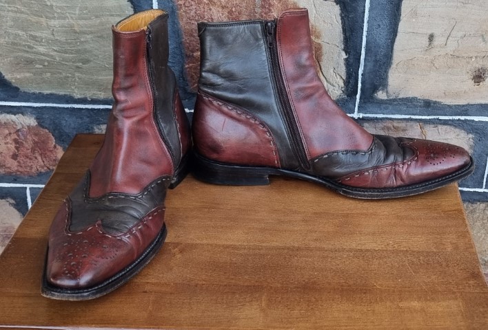Dress Boot with a side Zip, Leather, Maroon/black, by ‘Morelli’, Made in Italy, size 43