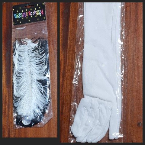 Feather/Sequined Headband White/black & Nylon Long Gloves, White by ‘Carnival Products’, ‘NEW’