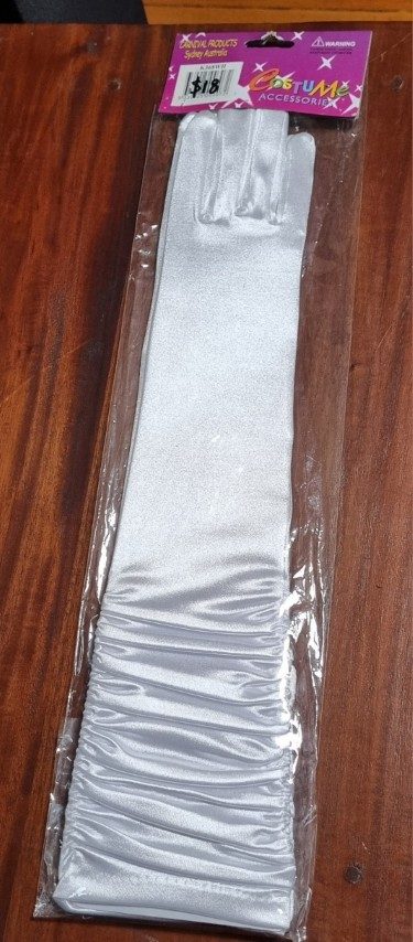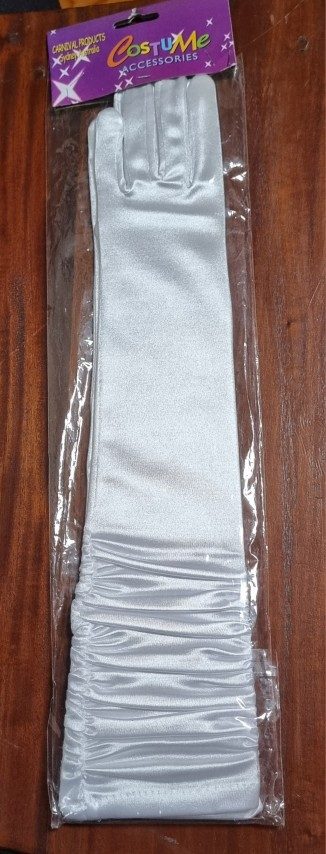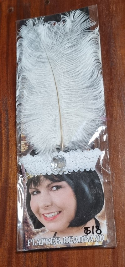 Feather/Sequined Headband & Satin Ruched Long Gloves, White, by ‘Carnival Products’, ‘NEW’