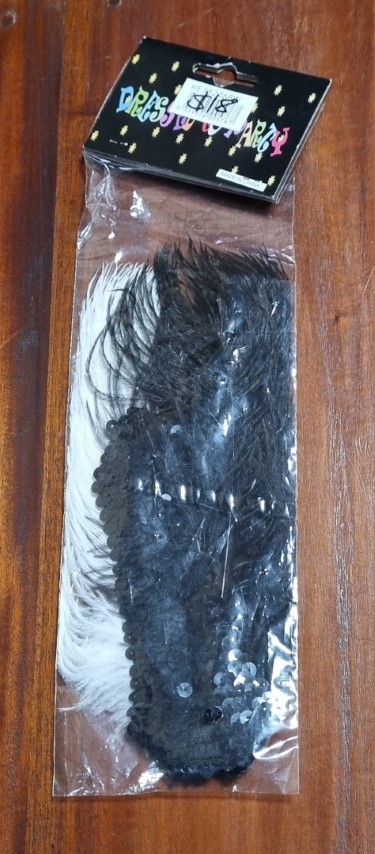 Feather/Sequined Headband White/black & Ruched Satin Long Gloves, White by ‘Carnival Products’, ‘NEW’