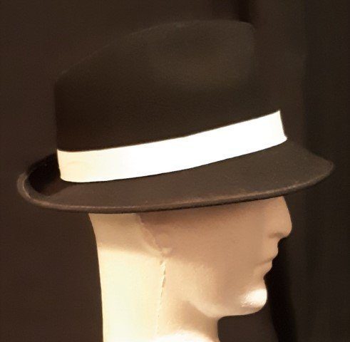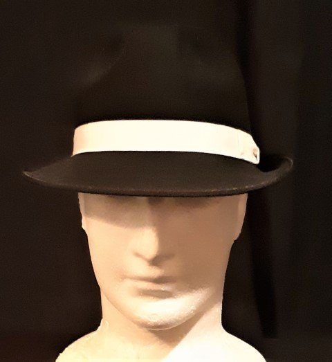 Fedora hat, Black with white band, wool felt by ‘Avenel of Melbourne’ , new.