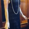 Our model is showing that with long gloves, pearls, and Mary Jayne heels, the 1920s vibe is created, non of these items are included.