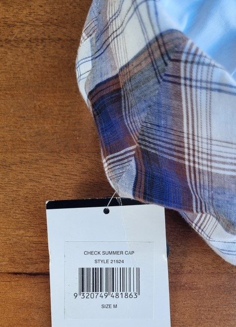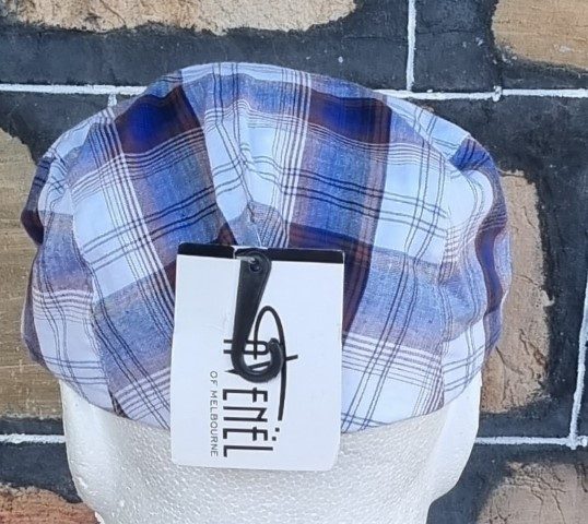 Flat Cap, by ‘Avenel of Melbourne’, blue checked, cotton, summer, new., Size M.