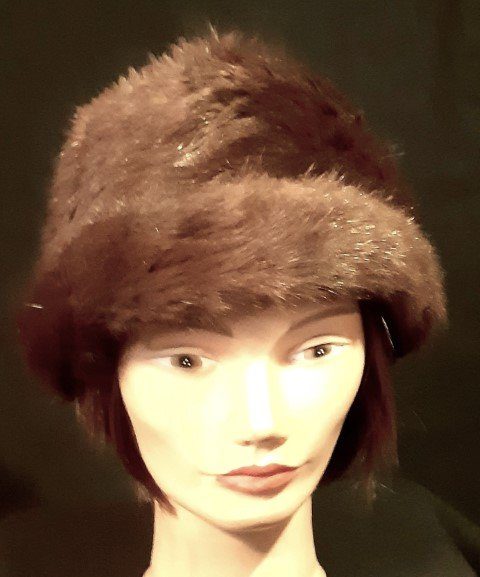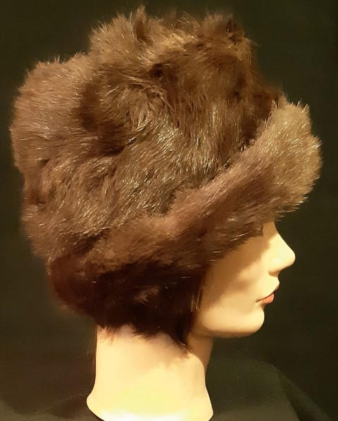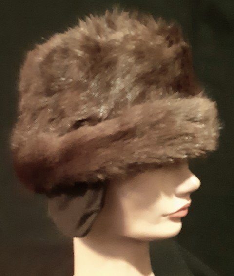 Fur & wool Cossack hat, 1970’s, Chocolate brown, with built in pull down ear warmers.
