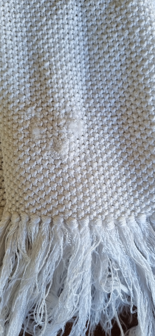 Freshly laundered, it is in good condition, except for a few little mends here and there, so for this reason it is half price.