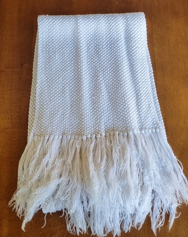 7″ wide, 50″ long, that includes the fringing.
